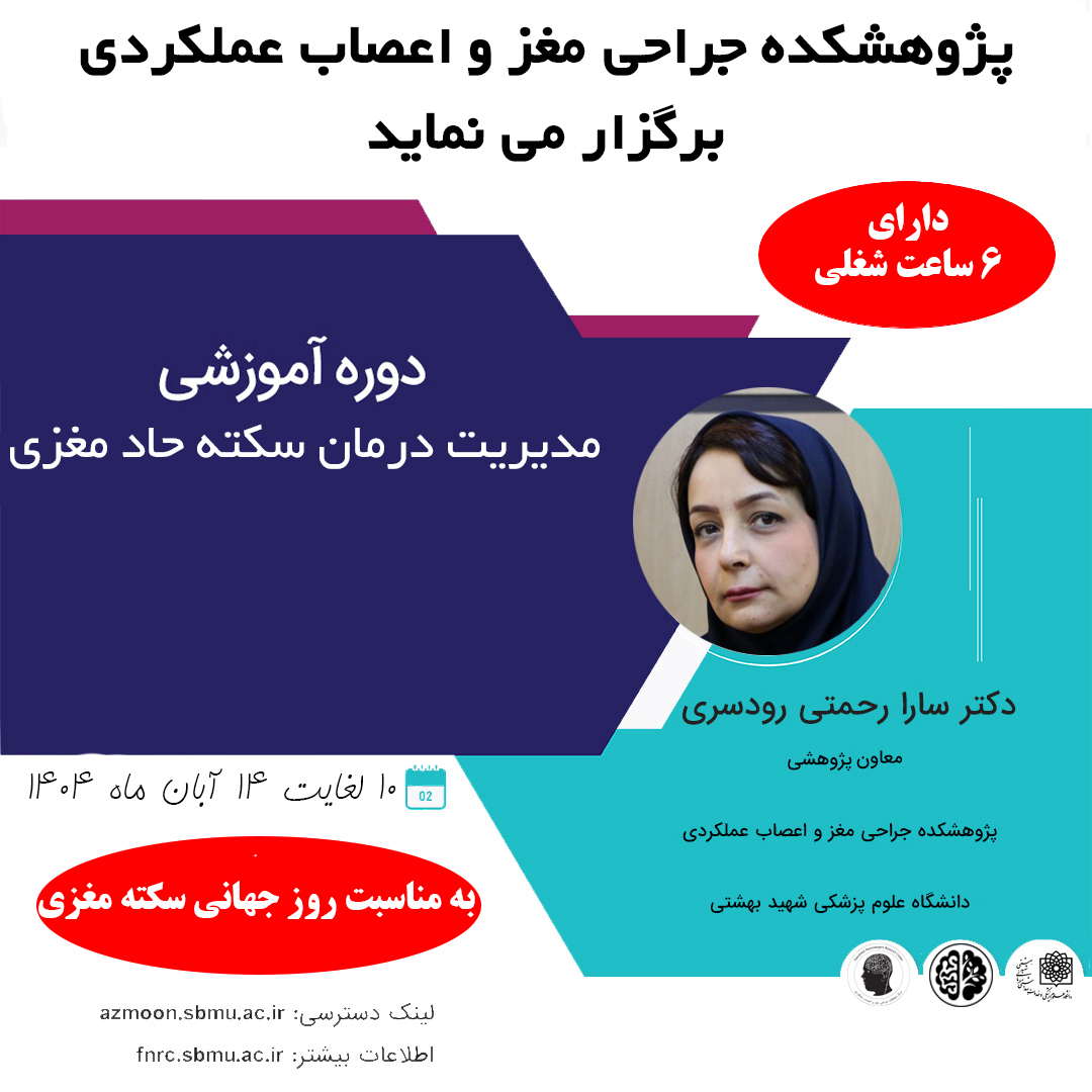 پژوهشکده و مرکز تحقیقات جراحی مغز واعصاب عملکردی دانشگاه، دوره های آموزشی مصوب را در آبان ماه برگزار می نماید.