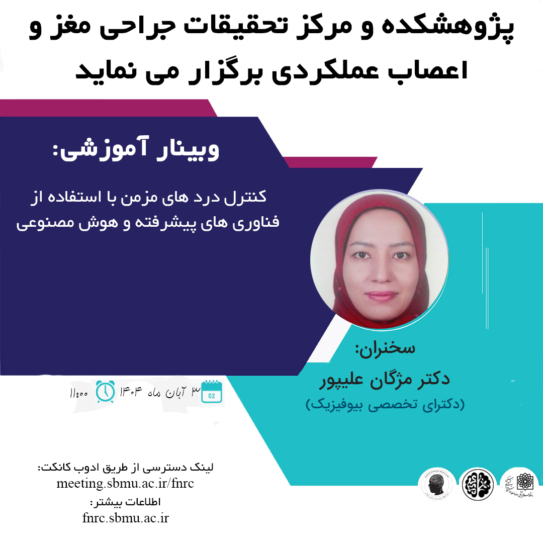 پژوهشکده و مرکز تحقیقات جراحی مغز و اعصاب عملکردی وبینار آموزشی "کنترل درد های مزمن با استفاده از فناوری های پیشرفته و هوش مصنوعی" را برگزار می نماید.